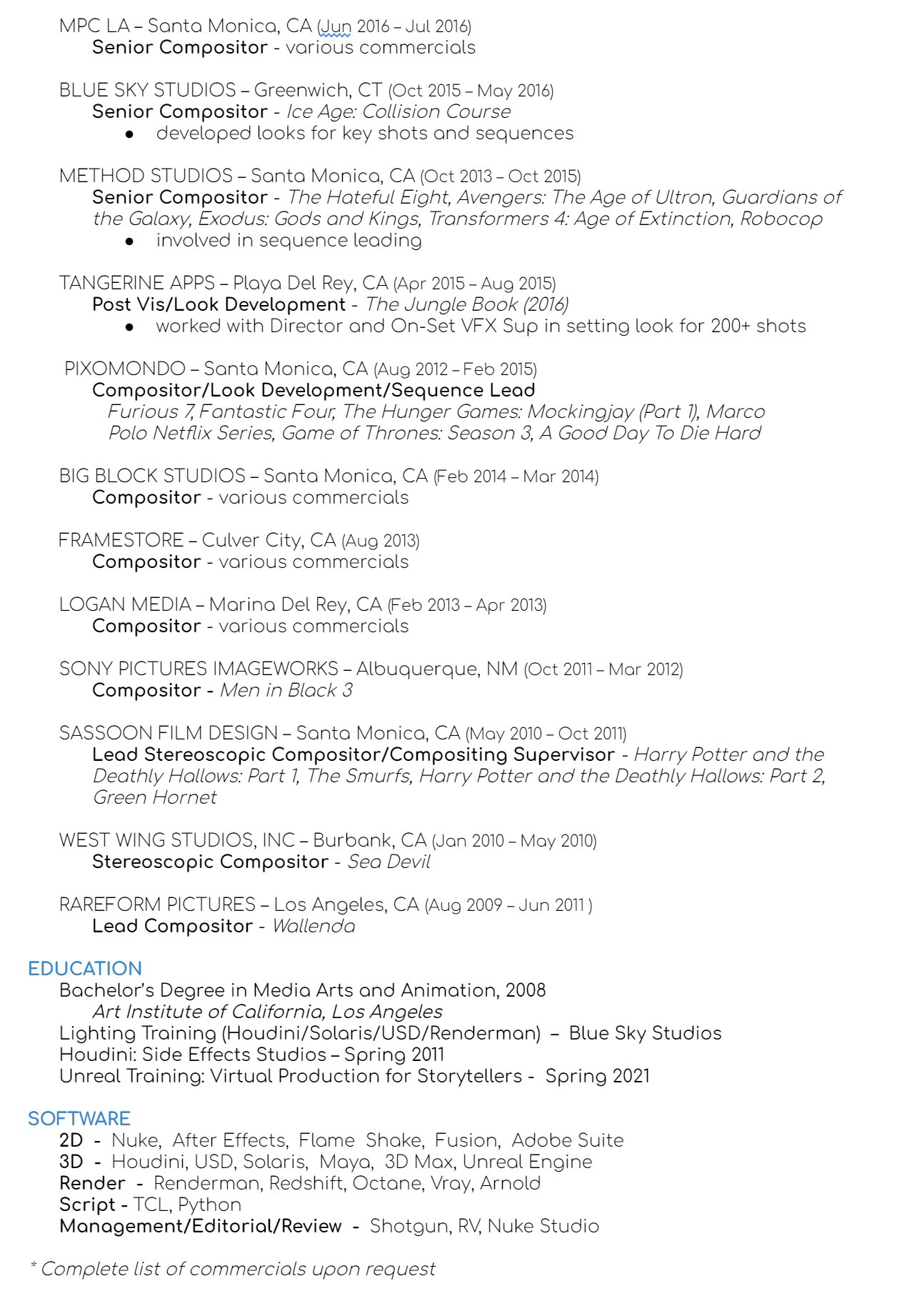 VFX SUPERVISOR|COMPOSITING SUPERVISOR|COMPOSITOR|LIGHTER